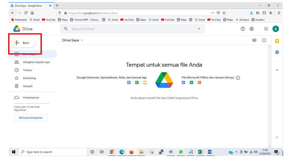 2. Klik Tulisan “Baru”